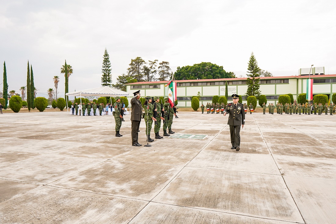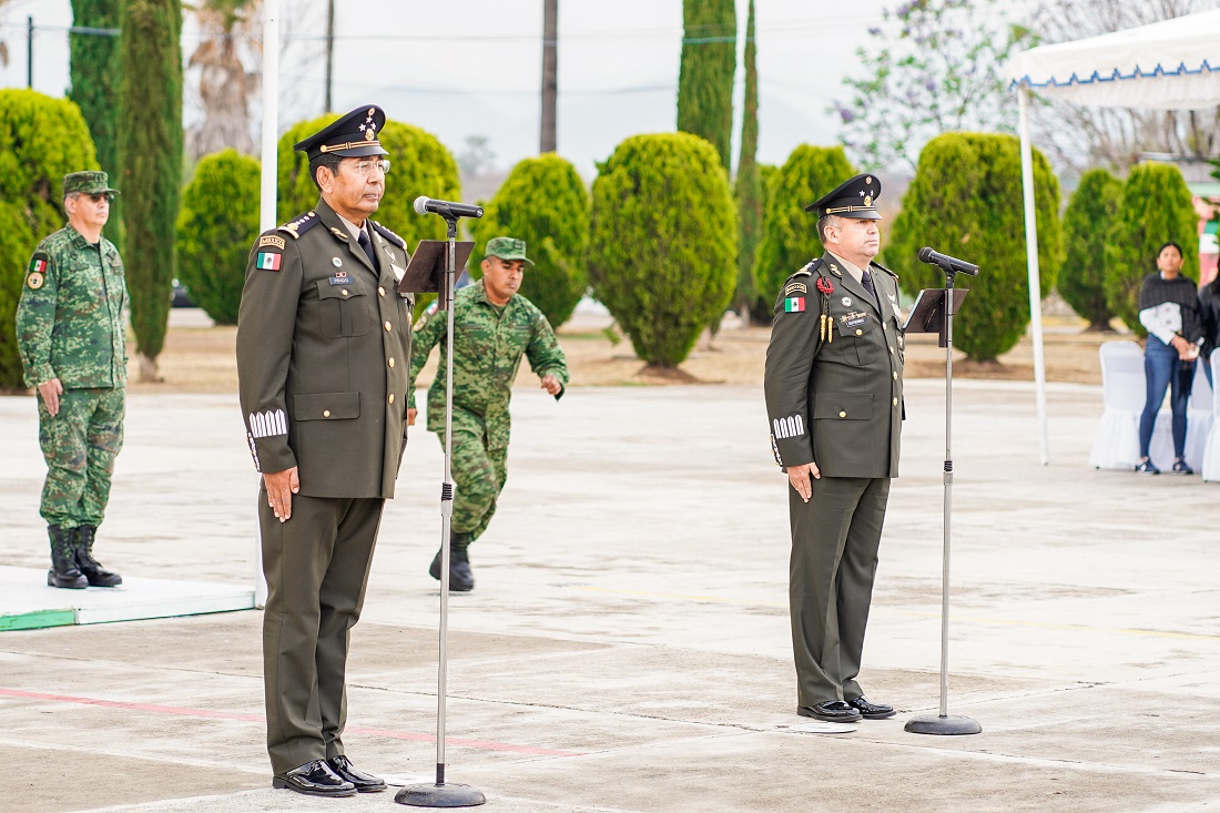En la ceremonia de toma de posesión del cargo y protesta de bandera, el General de Brigada, Diplomado de Estado Mayor, asumió su encargo ante funcionariado del Gobierno Federal, Estatal, autoridades municipales, generales, jefes, oficiales y tropa acantonados en este campo militar.