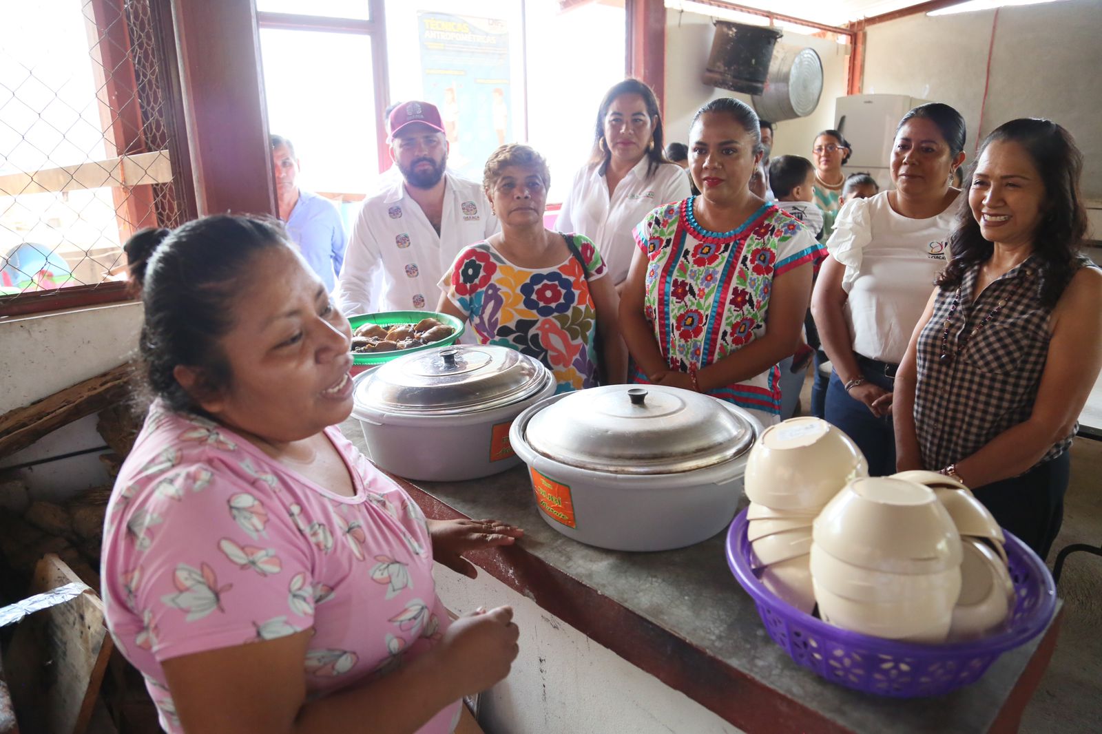 Bolaños Quijano y las autoridades municipales recorrieron la cocina comunitaria Ojito de Agua con el propósito de conocer su equipamiento y organización de su comité, con el propósito de identificar las áreas de mejora para reactivar su operatividad, debido a que ya tiene 20 años funcionando para atender a la niñez principalmente.