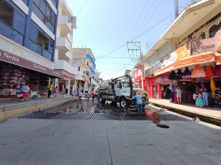 Los trabajos se efectúan en una longitud aproximada de 450 metros, con el equipo hidroneumático Vactor, para mejorar este servicio básico en beneficio de las familias de Santiago Pinotepa Nacional.