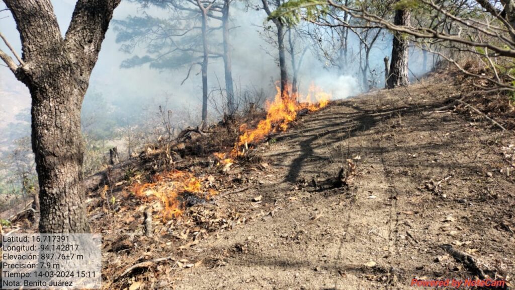En caso de detectar fuego, calor o humo, es importante informar inmediatamente a las autoridades a los números telefónicos 951 503 2166 de la Coesfo, así como al 951 515 0520, 951 516 5112 de la Conafor o al 9-1-1 de la Secretaría de Seguridad y Protección Ciudadana.