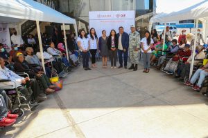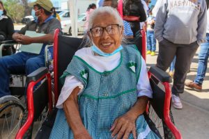 Durante su visita a este municipio mixteco, Irma Bolaños Quijano, presidenta honoraria del organismo asistencial encabezó la entrega de manera directa de sillas de ruedas, bastones y andaderas a personas que cumplieron con los requisitos para acceder a este apoyo, pues sus ingresos económicos y el de sus familias, les impedían adquirir uno de estos aparatos en el mercado.