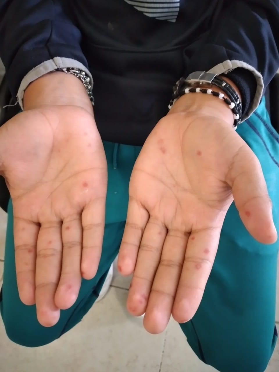 Julián Aquino, dijo que el virus Coxsackie A16-enfermedad mano-pie y boca-, se manifiesta con salpullido rojo en manos, pies y llagas en la boca, que pueden convertirse en ampollas e incluso aparecer en otras zonas como el área genital, y síntomas como: fiebre, dolor de garganta, malestar general y falta de apetito.