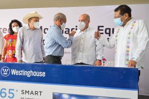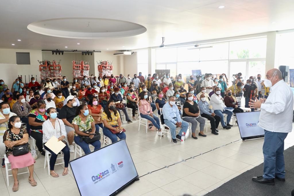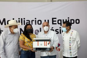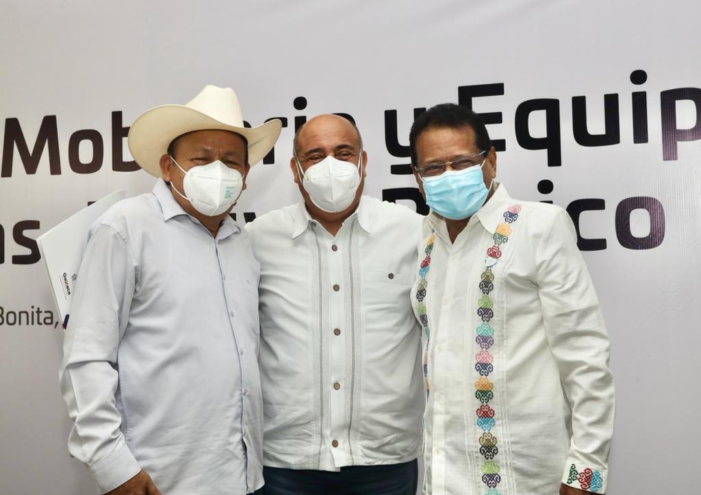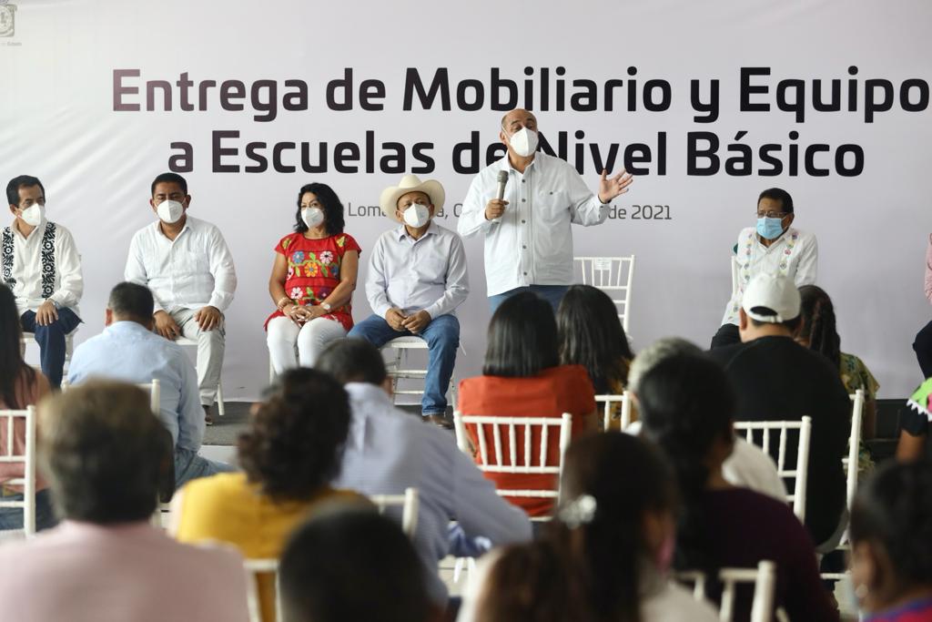 Loma Bonita, Oax. 29 de octubre de 2021.- Autoridades municipales en funciones y electas, legisladores, así como madres y padres de familia de la región de la Cuenca, agradecieron la respuesta del gobernador Alejandro Murat Hinojosa, a través del Instituto Estatal de Educación Pública de Oaxaca (IEEPO), para la gestión y entrega de mobiliario, equipo y material en beneficio de escuelas de nivel básico.