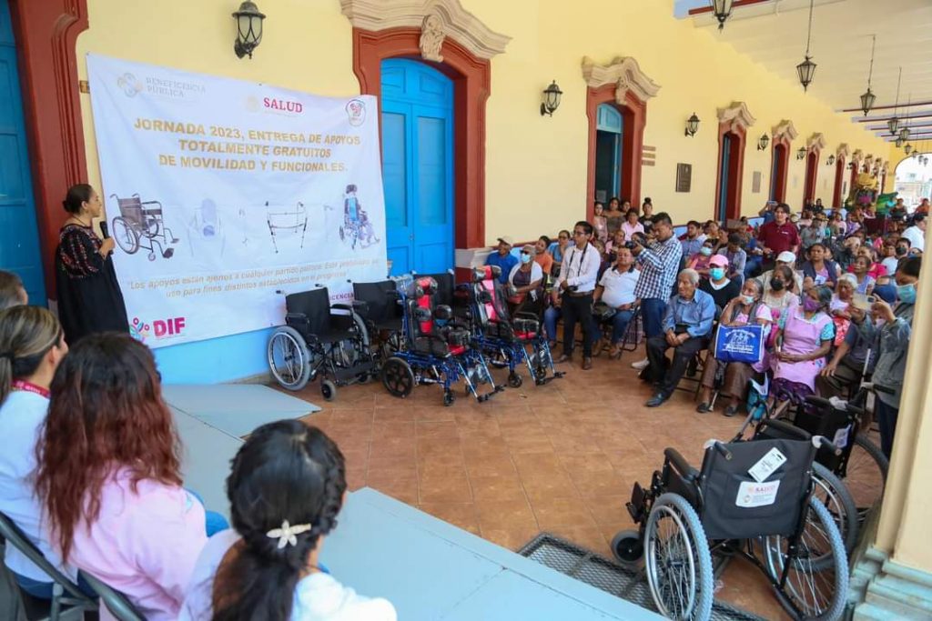 En San Juan Bautista Cuicatlán se entregaron cuatro andaderas y 17 silla de ruedas estándar hospitalaria en beneficio de habitantes de los municipios Chiquihuitlán de Benito Juárez, Santa María Tecomavaca, Tomellín, Valerio Trujano, San Pedro Sochiápam y San Martín Toxpalan.