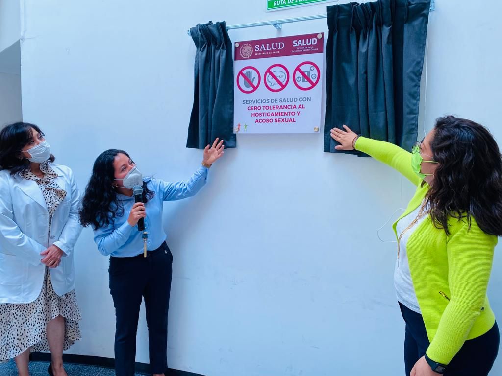 Enfatizó que para lograr la develación de la placa, se instaló en la oficina un buzón de quejas con código QR en donde se puede denunciar estos casos, evitando la revictimización con una atención oportuna, de calidad y calidez; se diseñó y circuló la Ruta para la atención de los casos de Hostigamiento y Acoso Sexual que incluye al comité de ética de la dependencia, así como una “Persona Consejera” que se encarga de recibir los casos y dar atención de forma eficaz.