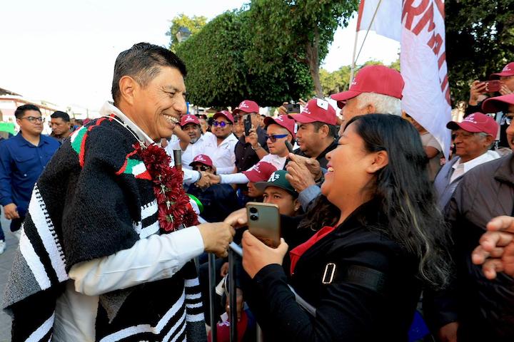 Reunido con pobladores de esa zona de la entidad, en la Heroica Ciudad de Huajuapan de León; el Mandatario estatal destacó que estas acciones emprendidas por su administración se suman a las que lleva a cabo el Gobierno de la Presidenta Claudia Sheinbaum con el Plan Lázaro Cárdenas del Río.