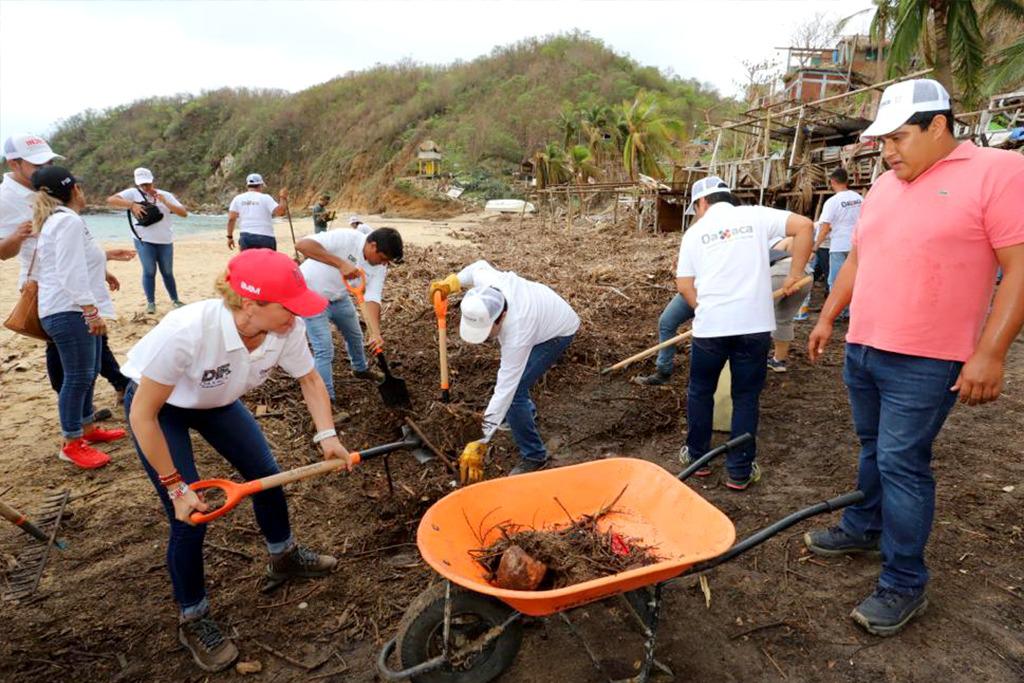 Otra de las urgencias que dejó la contingencia, fue la afectación al sector turístico de la costa oaxaqueña. Por ello, y para coadyuvar en su pronta recuperación, Morán de Muratasistió a la Playa “Rinconcito”, ubicada en Mazunte, para asistir a la población, brindándoles víveres y ayudándolos a limpiar esta playa de escombros y basura que dejó el huracán a su paso, para reactivar esta importante zona turística.