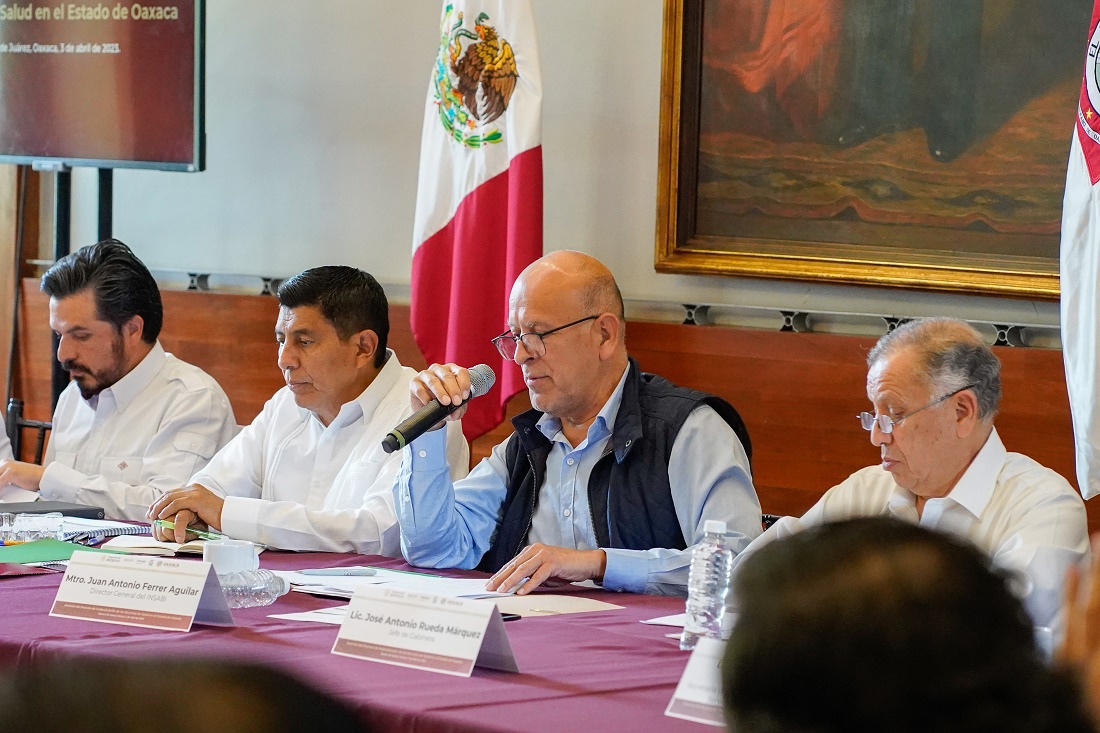 Durante su intervención, José Antonio Rueda Márquez, jefe de Gabinete del Gobierno de Oaxaca, destacó las reuniones celebradas en las últimas semanas sobre abasto, estatus jurídico de las unidades, personal, médicos e infraestructura.