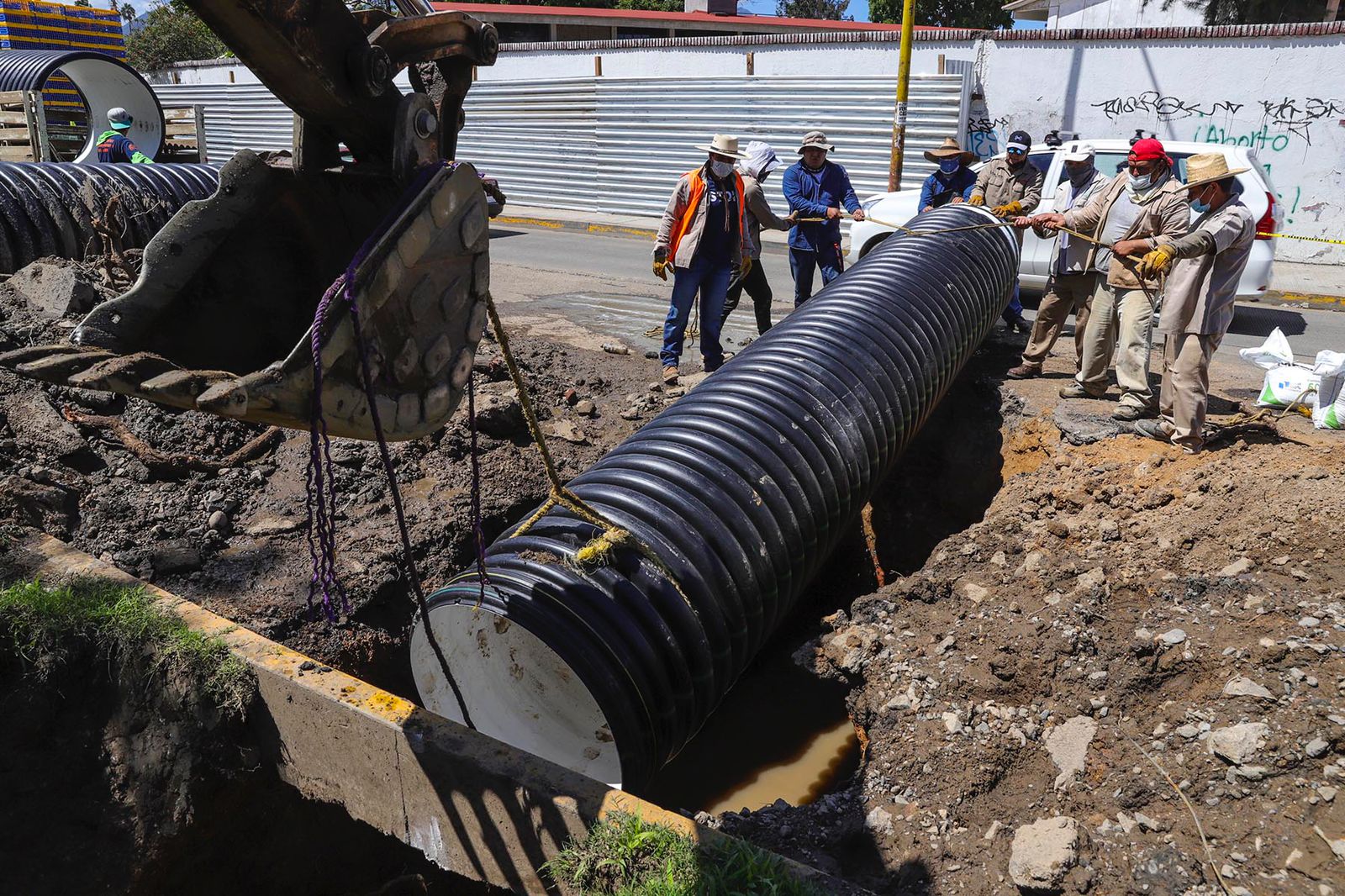 Oaxaca de Juárez, Oax. 22 de junio del 2021.- Los Servicios de Agua Potable y Alcantarillado de Oaxaca (SAPAO) avanzan con los trabajos de reparación en un asentamiento ubicado en la calle de 20 de Noviembre esquina Periférico, cerca del Parque del Amor, informó el encargado del despacho de esta dependencia, Miguel Ángel Morales y Morales.
