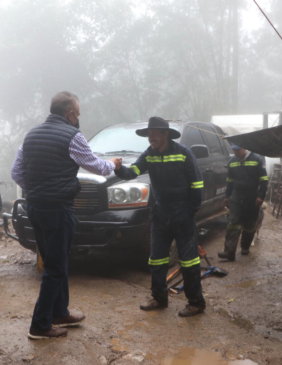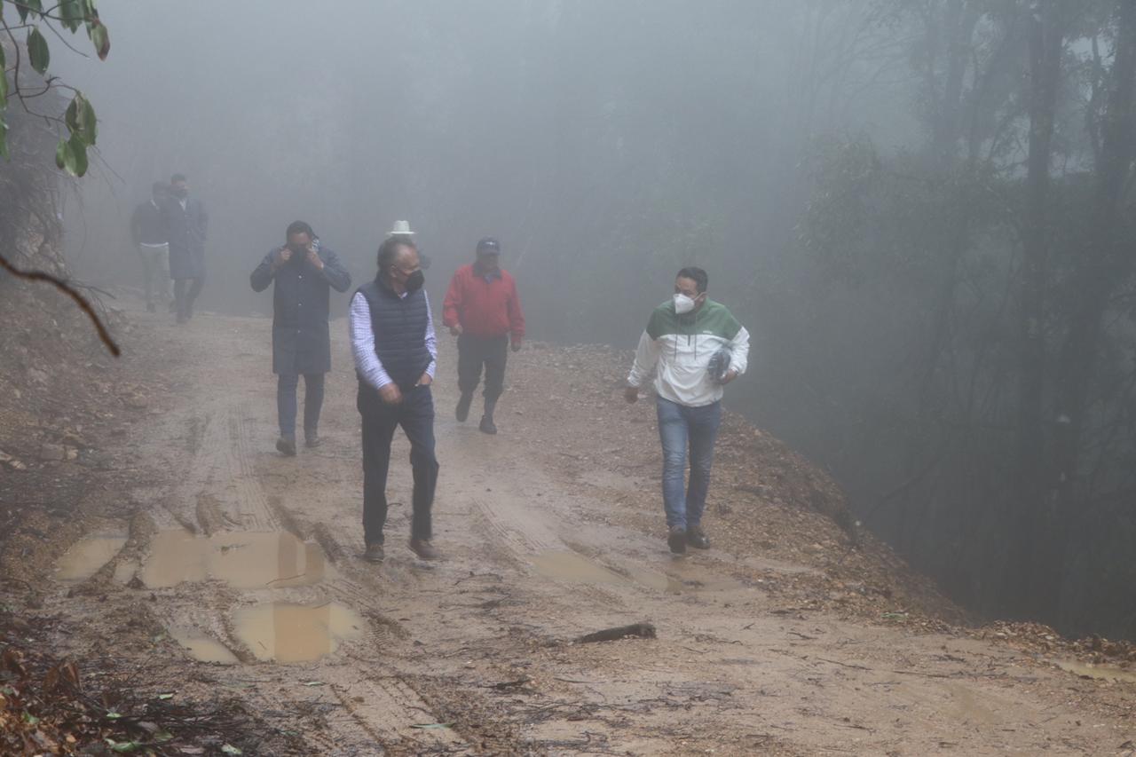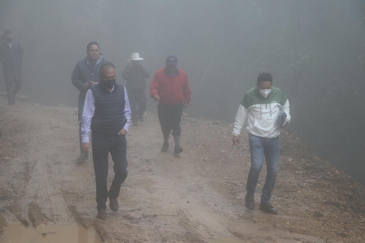 San Pedro y San Pablo Ayutla Mixe, Oax. 25 de agosto de 2020.- En medio de la neblina, la lluvia y los constantes derrumbes en la región, el titular de la Comisión Estatal del Agua. Héctor Pablo Ramírez Puga y las autoridades municipales y comunales supervisaron los trabajos de perforación de un pozo profundo que busca dotar de agua suficiente y de calidad a la población.