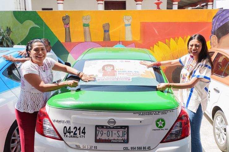 También, se reunió con transportistas locales para fortalecer el tema de la movilidad en la región; y llevó a cabo la colocación de calcomanías en vehículos en la modalidad de taxi como parte del programa “Entre broma y broma el acoso se asoma”, promovido por el Sistema Estatal para el Desarrollo Integral de la Familia (DIF) Oaxaca.