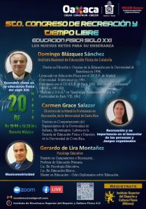 Oaxaca de Juárez, Oax. 19 de marzo de 2021. La quinta de las 11 actividades que conforman el calendario del Bloque Deportivo “Benito Juárez” se realizará este sábado con el Quinto Congreso de Recreación y Tiempo Libre “Educación Física Siglo XXI, Los Nuevos Retos para su Enseñanza”, que contará con tres ponentes de talla internacional.