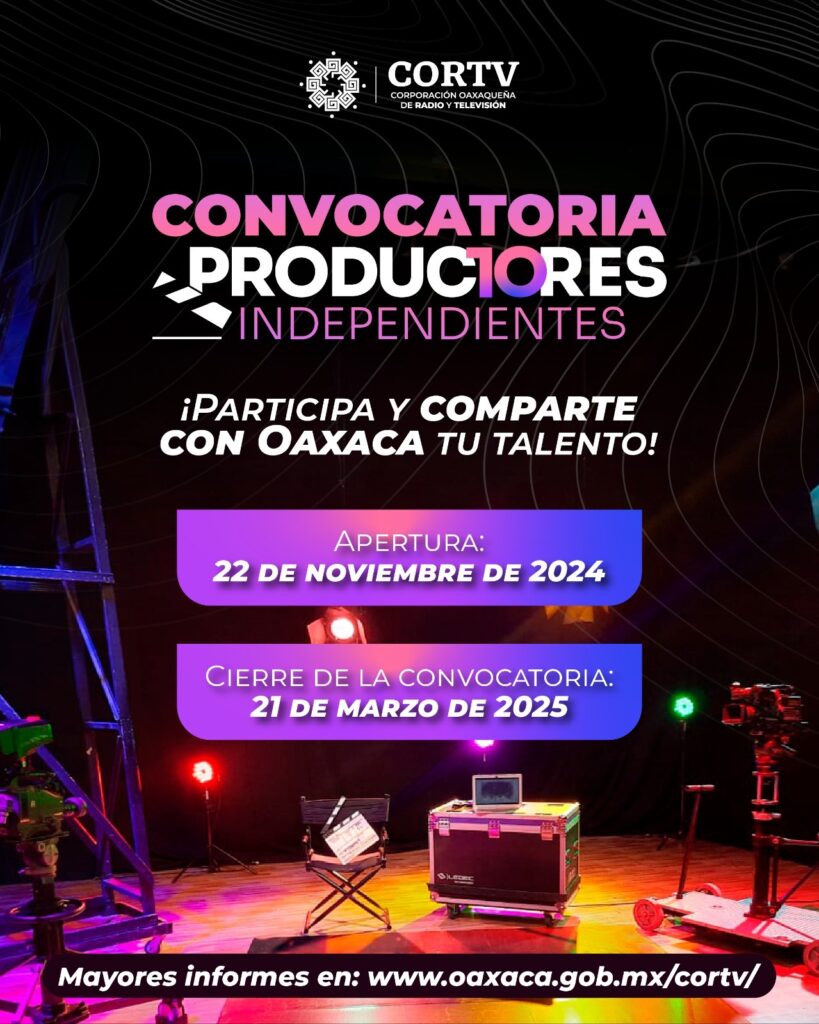 San Jacinto Amilpas, Oax. 15 de febrero de 2025.- Con el objetivo de garantizar la libertad de expresión, la pluralidad y la participación activa de la sociedad civil en espacios asignados dentro de la programación de sus diversas frecuencias, la Corporación Oaxaqueña de Radio y Televisión (Cortv) invita al público en general a participar en la convocatoria Productores Independientes.