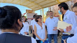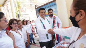 Acompañado de la secretaria de Salud, Alma Lilia Velasco Hernández, así como del presidente municipal de esta localidad, Miguel Martínez Castellanos; el secretario de Desarrollo Económico, Raúl Ruiz Robles, entre otros funcionarios, el Mandatario estatal celebró que a través de este programa que se efectuará a lo largo y ancho del territorio oaxaqueño, será posible multiplicar las acciones en beneficio de la gente que más lo necesita.