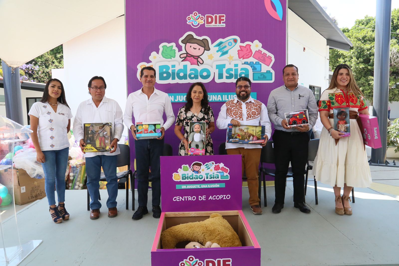 Oaxaca de Juárez, Oax. 28 de marzo de 2023.- El Sistema DIF Oaxaca se ha fijado la meta de recabar 50 mil juguetes como parte de la colecta denominada “Bidao Tsia, un juguete, una ilusión”, los cuales serán entregados el 30 de abril a niñas y niños que habitan en comunidades alejadas y donde se registran los altos índices de pobreza en el estado.