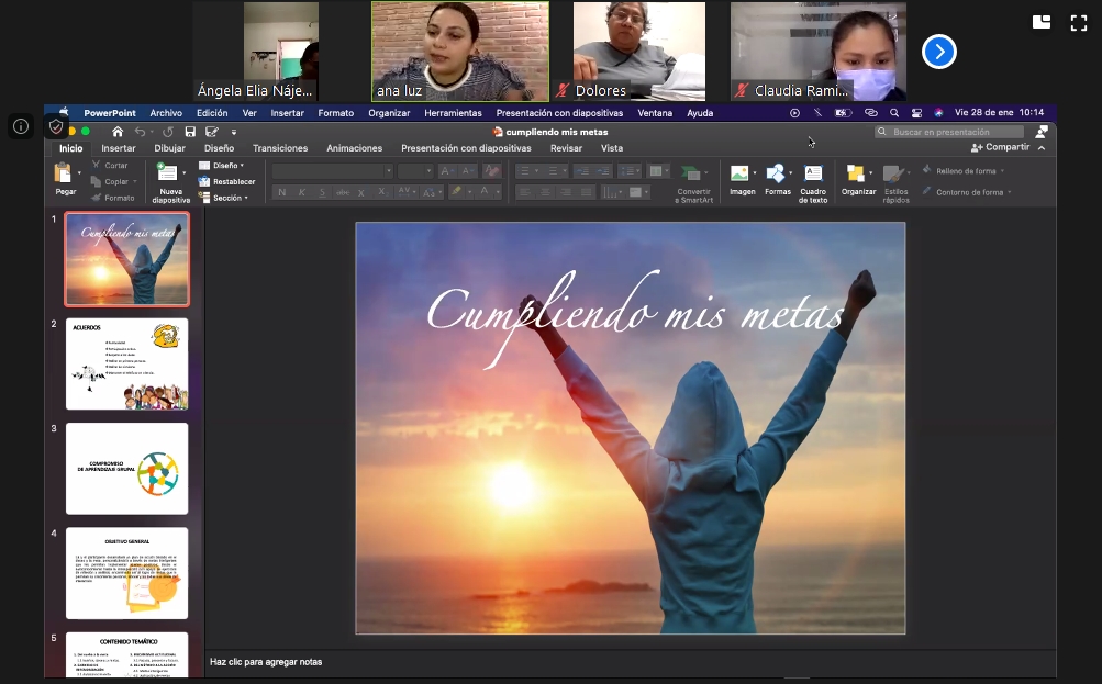A lo largo de dos sesiones virtuales, la capacitadora, Ana Luz Pacheco Gómez, brindó a mujeres y hombres del servicio público los principales conceptos para desarrollar un plan de acción basado en deseos y metas, el cual está integrado por metas inteligentes que permiten ajustes positivos en cada individuo.