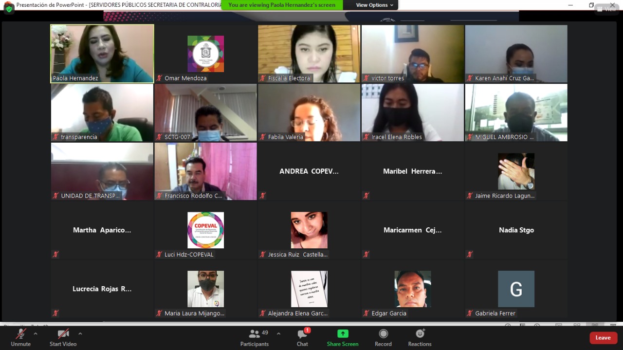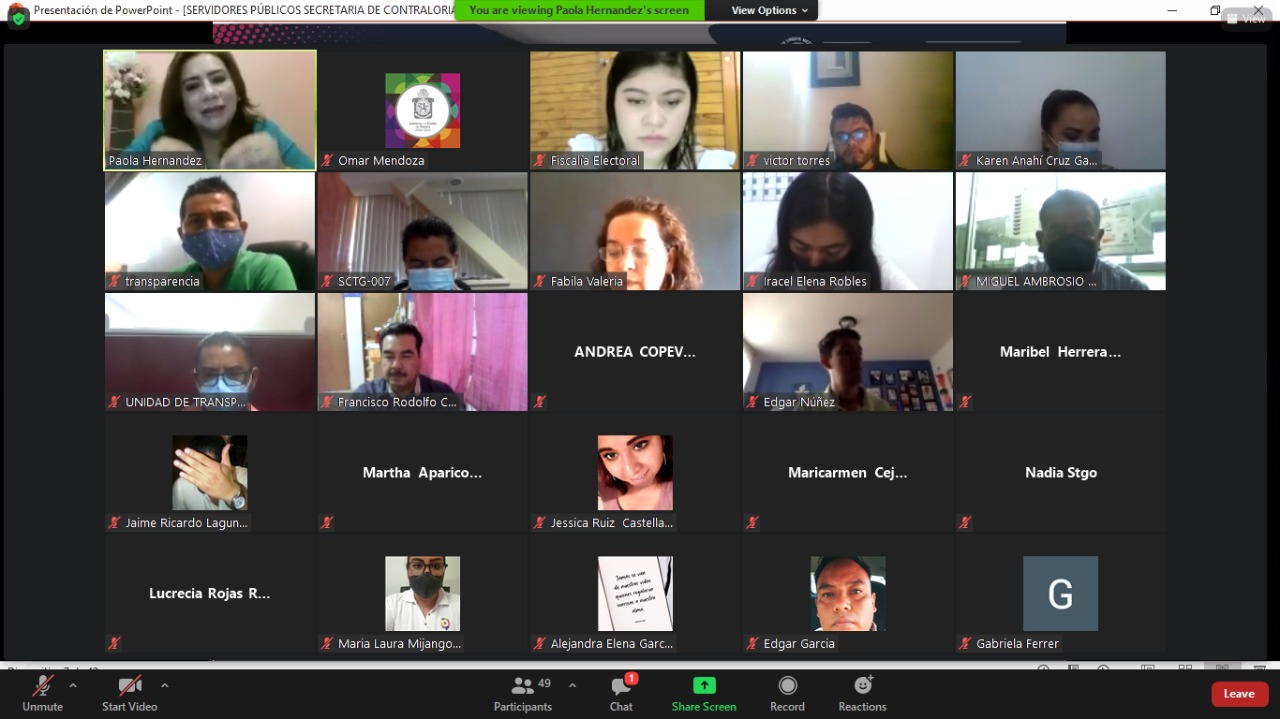 Oaxaca de Juárez, Oax. 10 de marzo de 2021.- La Secretaría de la Contraloría y Transparencia Gubernamental (SCTG), en coordinación con la Fiscalía Especializada en Delitos Electorales, iniciaron de manera virtual los cursos de capacitación a las y los Servidores Públicos del Poder Ejecutivo del Estado de Oaxaca.