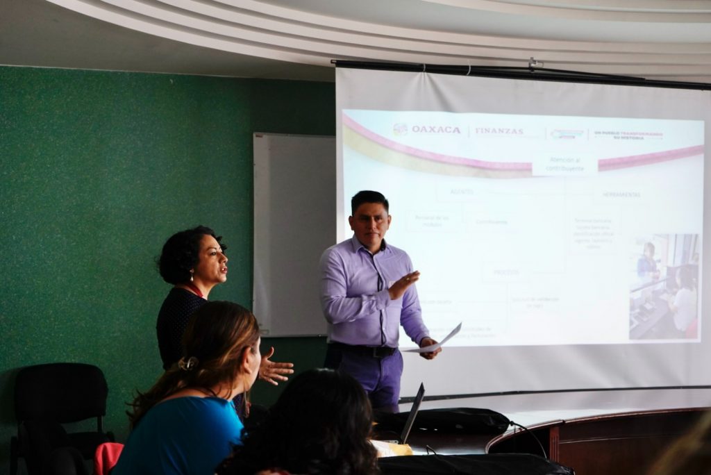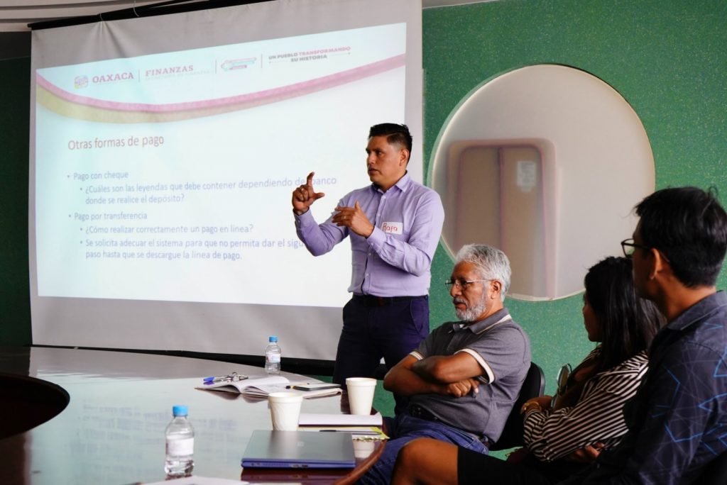 San Bartolo Coyotepec, Oax. 6 de junio de 2023.- A través del curso denominado “Actualización de los procesos de cobro con tarjeta”, la Secretaría de Finanzas (Sefin) del Gobierno de Oaxaca capacitó al personal de los 37 módulos de cobro con tarjeta que se encuentran en diversas dependencias estatales.