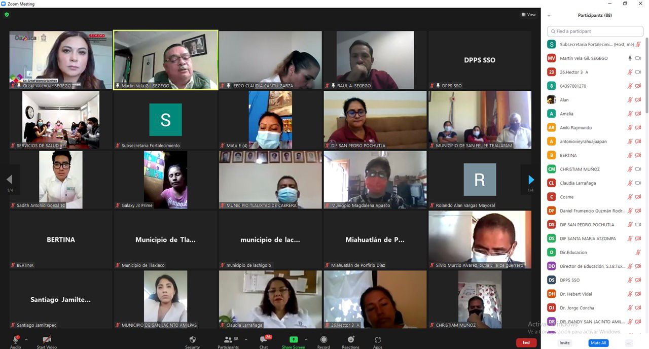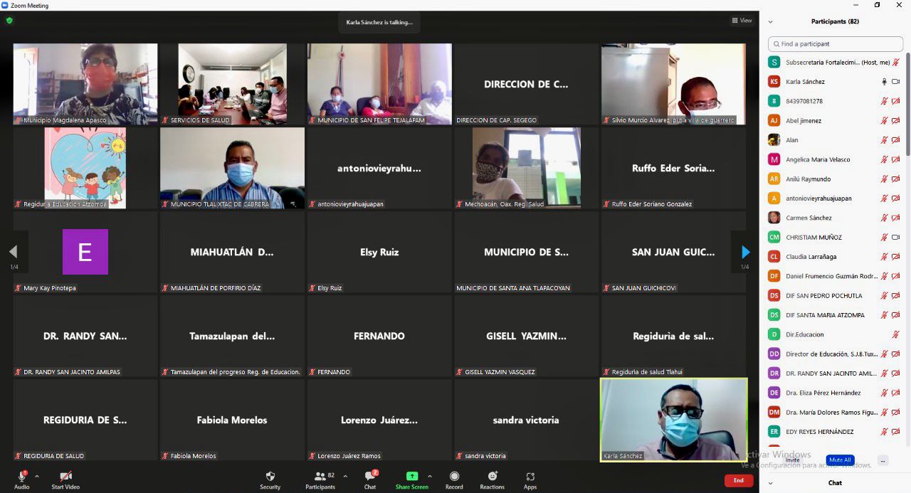 Tlalixtac de Cabrera, Oax. 09 de septiembre de 2021. Autoridades de 50 municipios participaron en la capacitación virtual “Acciones de Prevención y Salud para un Regreso Seguro a las Aulas”, realizada por la Secretaría General de Gobierno (Segego), a través de la Subsecretaría de Fortalecimiento Municipal y la Dirección de Capacitación y Apoyo a la Gestión Municipal, en coordinación con el Instituto Estatal de Educación Pública de Oaxaca (IEEPO) y los Servicios de Salud de Oaxaca (SSO).