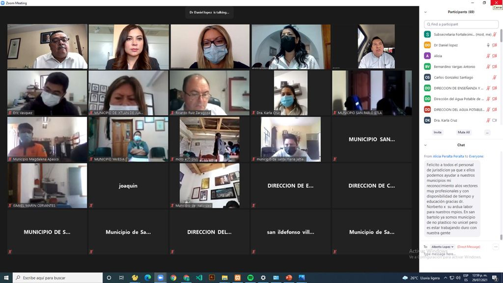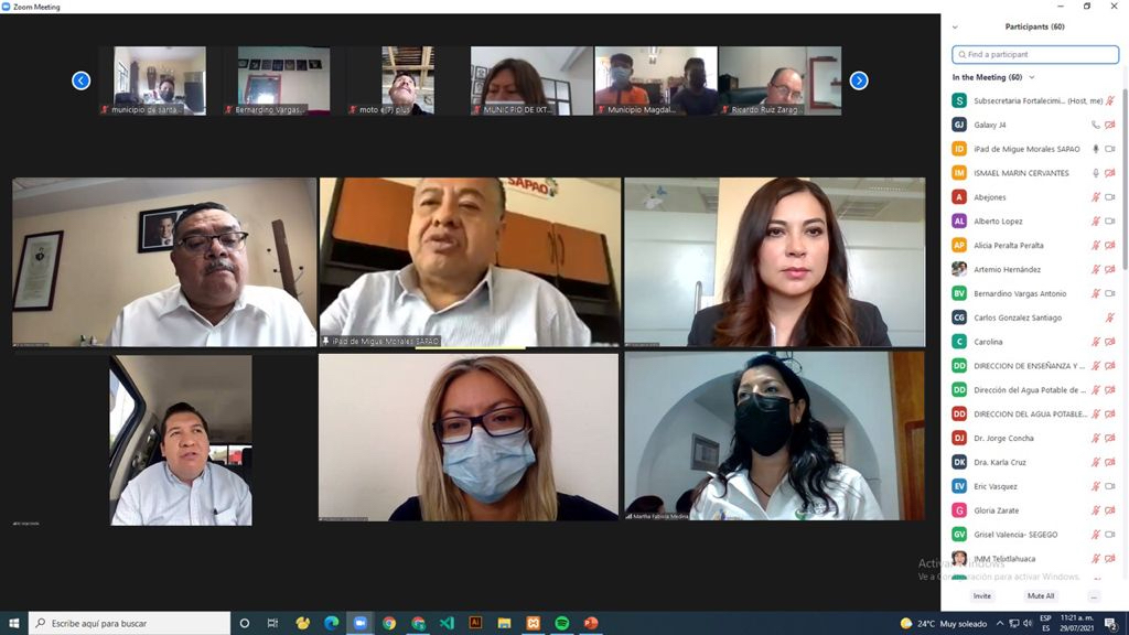 Oaxaca de Juárez, Oax. 30 de julio de 2021.- Con el compromiso de fortalecer las medidas sanitarias y disminuir los contagios por COVID-19 en la entidad, los Servicios de Salud de Oaxaca (SSO), en coordinación con la Dirección de Capacitación y Apoyo a la Gestión Municipal de la Secretaría General de Gobierno (Segego), capacitaron en modo virtual a 40 autoridades municipales de Valles Centrales, Mixteca, Sierra Norte e Istmo de Tehuantepec.