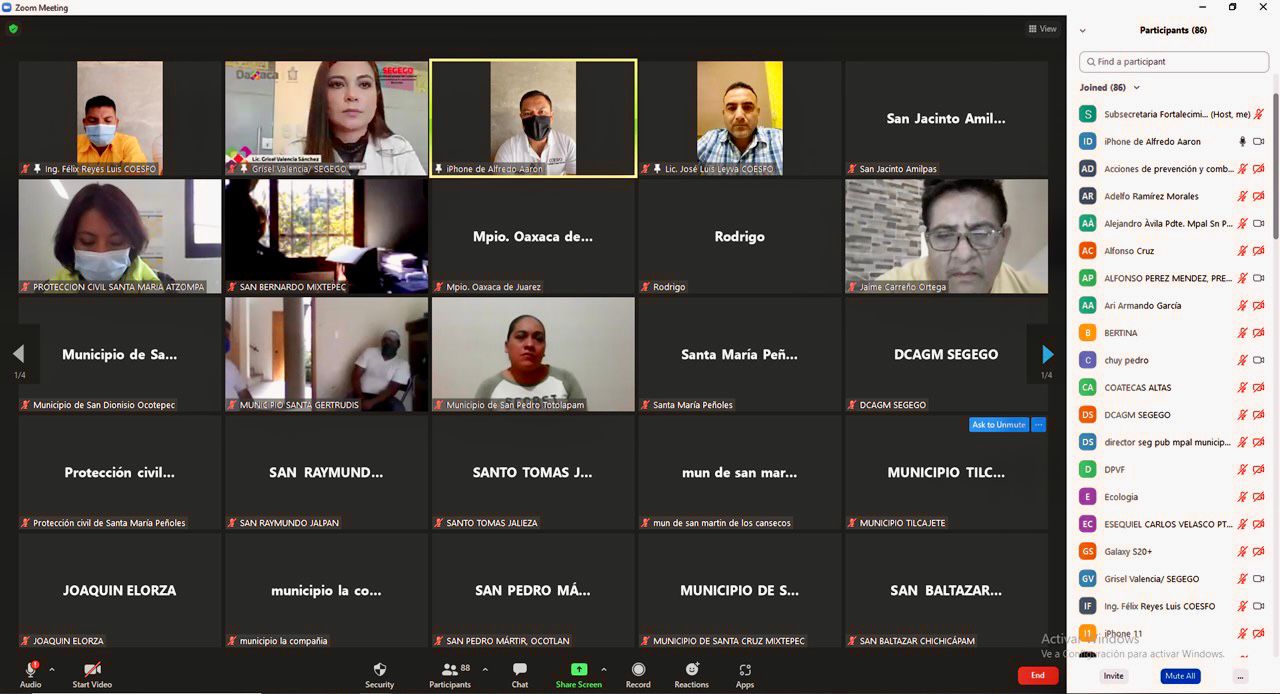 La jornada de capacitación se realizó el 4 de noviembre, a través de la plataforma digital zoom, misma que inició con la ponencia “Acciones de Prevención y Combate de Incendios Forestales”, a cargo de Félix Reyes Luis, jefe de brigada de la Coesfo.