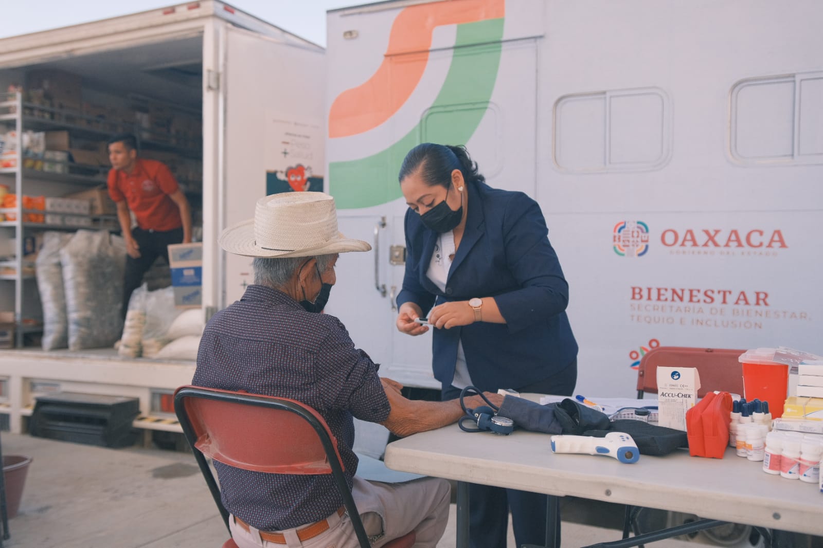 La atención se otorgó en la cancha municipal de esta población del Distrito de Tlacolula, donde desde muy temprano las personas se acercaron para recibir atención médica, odontológica, nutricional, pruebas de glucosa, y de escáner mamario.