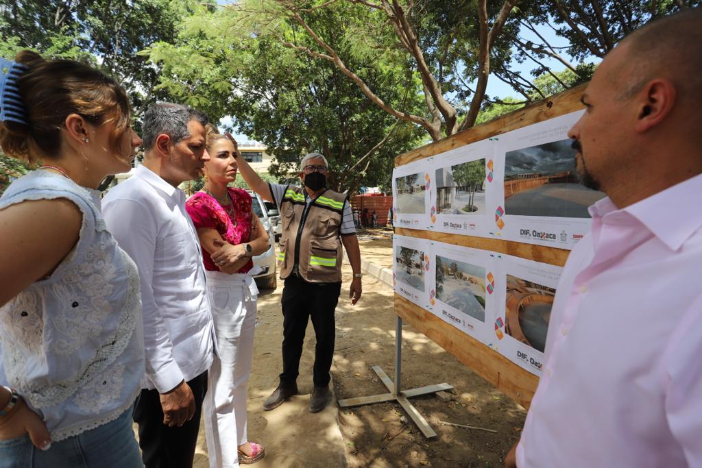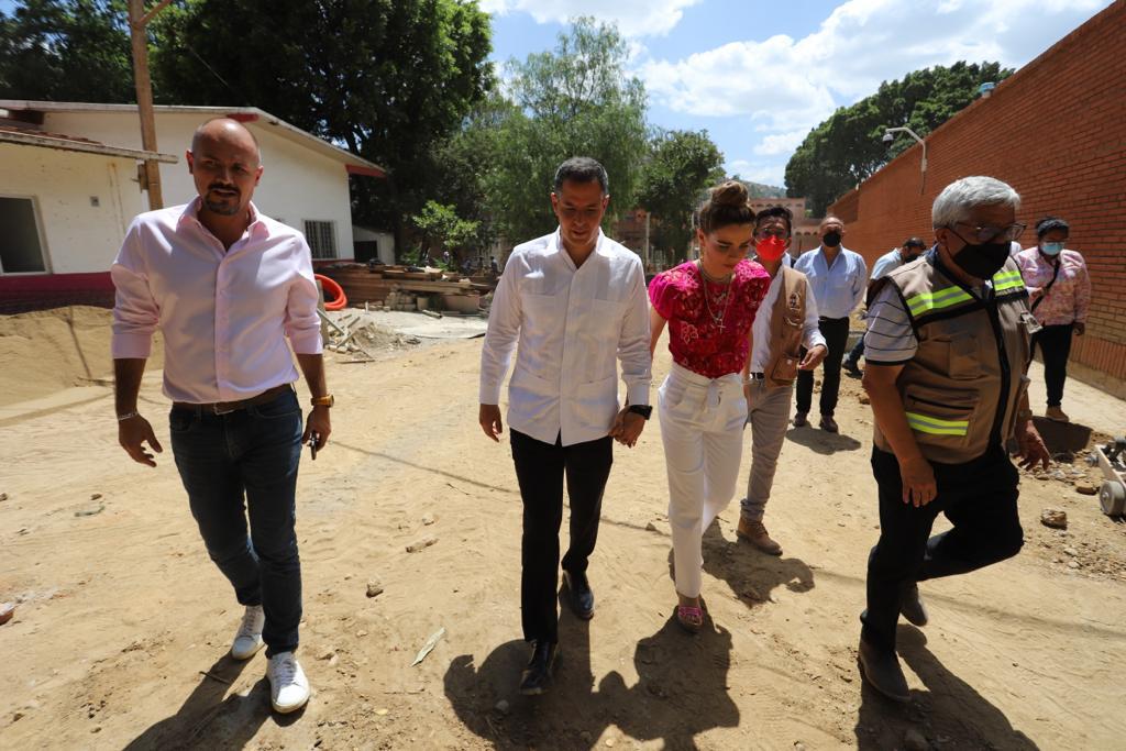 Por lo anterior, el Mandatario Estatal en compañía de su esposa, la presidenta honoraria del DIF Oaxaca, Ivette Morán de Murat, recorrieron los avances de la obra del complejo “Casa de Alas”, conjunto arquitectónico que se encuentra en fase final de construcción en la colonia Miguel Alemán Valdez, y que albergará oficinas administrativas, pabellón psiquiátrico, parques, talleres, área de asistencial social e infantil, casas hogar, albergue de tránsito, taller de carpintería, dormitorio, lavandería, capilla, estacionamiento y bodegas, mismo que beneficiará no sólo a niñas, niños y adolescentes en situación de vulnerabilidad, sino también, para todos aquellos habitantes de la región de los Valles Centrales y del Estado, que deseen visitar las instalaciones.