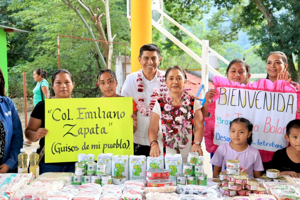 Las canastas alimentarias corresponden a los programas: Guisos de mi Pueblo para 289 habitantes de cinco localidades; Itacate de mi Corazón para 351 personas de ocho comunidades; y Desayuno de Letritas para 334 estudiantes de seis escuelas de nivel básico.