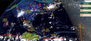 Por otra parte, dio a conocer que la onda tropical No.15 se encuentra poco activa, ubicada al sur de la Península de Yucatán, desplazándose a 20 km/h; para el día de mañana comenzará a internarse por el oriente del estado.
