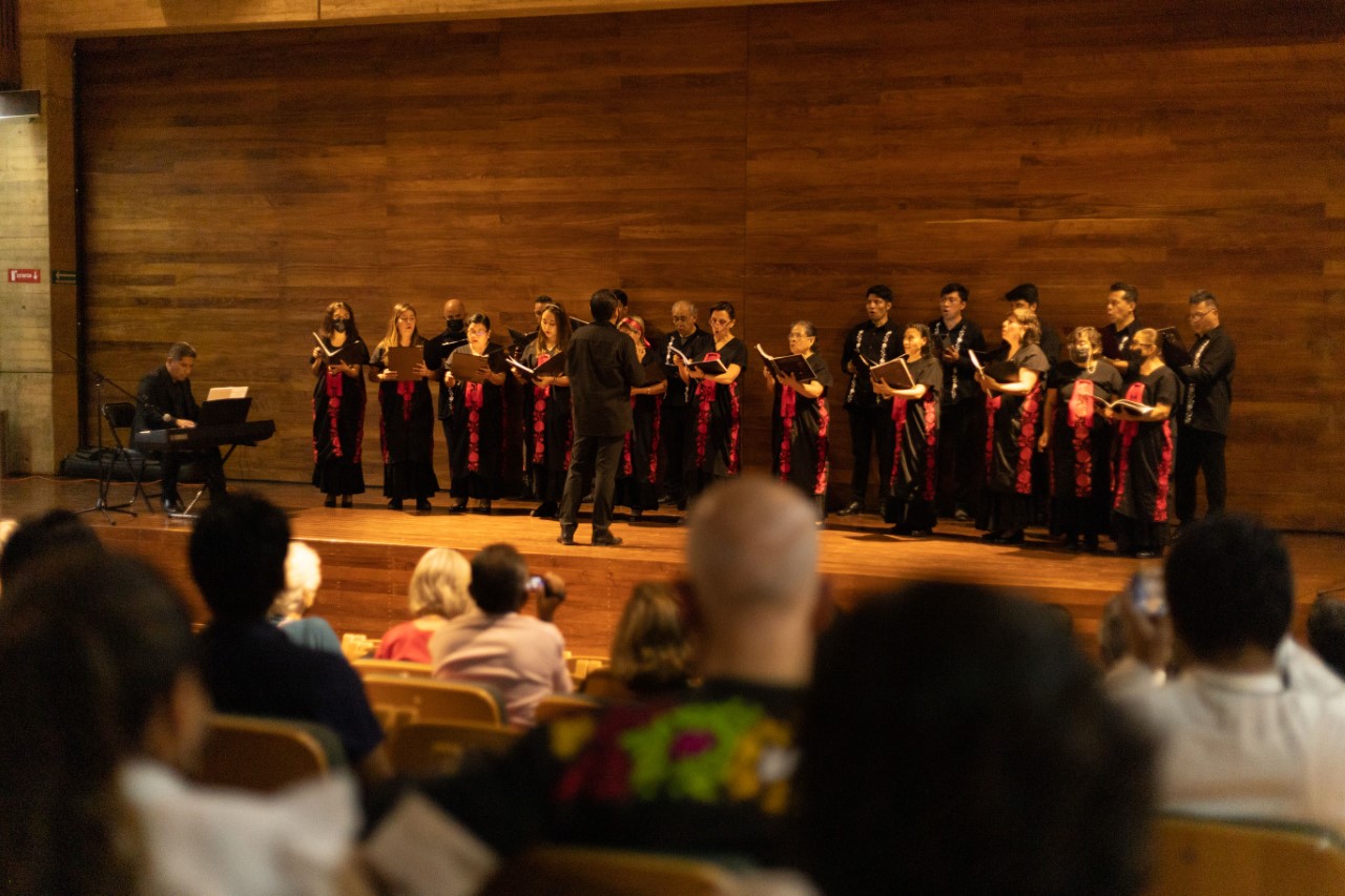 A lo largo del evento, el público pudo escuchar temas populares como “Llorona”, “La Bikina”, “Cielito lindo” y “Amor eterno”. El Coro también interpretó canciones internacionales como “Tango Uno”, “Ojos españoles” y “Noches de Moscú”. Para finalizar, las y los asistentes se pusieron de pie para escuchar “Dios nunca muere”, pieza del maestro Macedonio Alcalá.