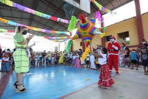 San Miguel Tlacamama, Oax. 23 de diciembre de 2021.- Trabajar en beneficio de la niñez oaxaqueña es una prioridad para el Gobierno del maestro Alejandro Murat Hinojosa, Gobernador Constitucional del Estado de Oaxaca; por ello, personal del Sistema para el Desarrollo Integral de la Familia (DIF) Oaxaca, encabezado por la señora Ivette Morán de Murat, y el director general de esta institución, Christian Holm Rodríguez, celebraron estas fiestas decembrinas con niñas, niños y padres y madres de familia del municipio de San Miguel Tlacamama, en la Costa oaxaqueña.