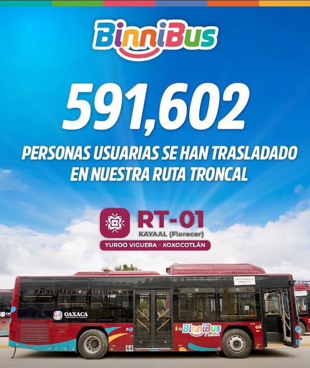 Con este resurgimiento, la administración del Gobernador Salomón Jara Cruz puso en marcha la ruta troncal Kayaal Yuroo Viguera-Yuroo Santa Cruz Xoxocotlán, el pasado 20 de septiembre; desde entonces, ha movilizado a 591 mil 602 personas usuarias con 23 unidades.
