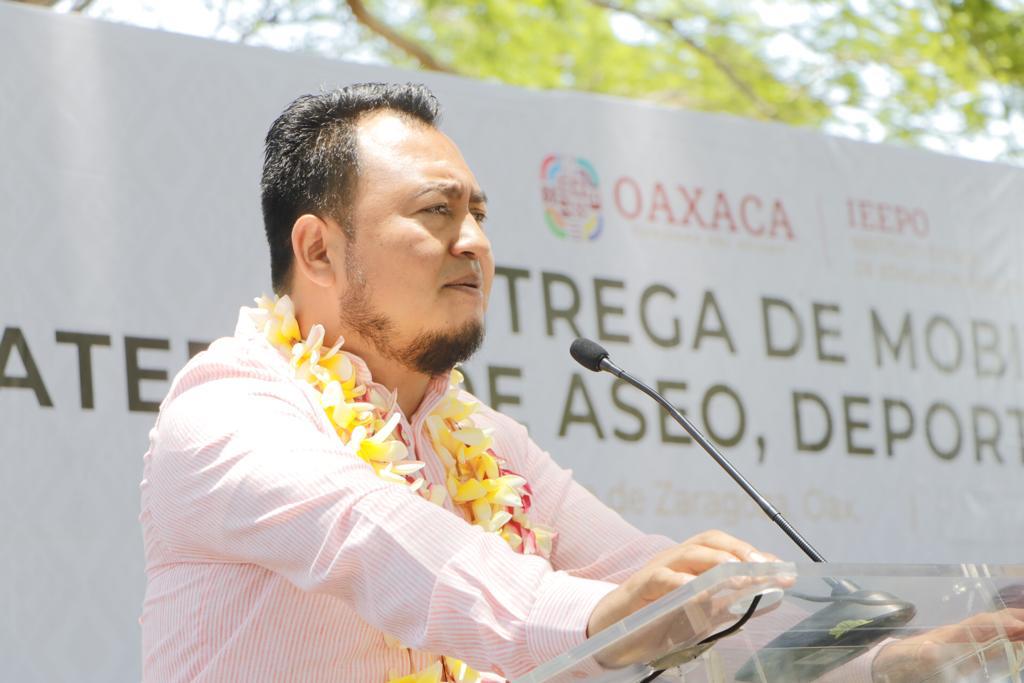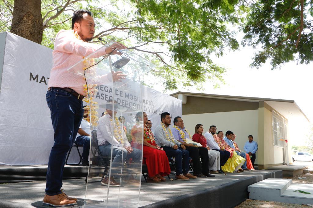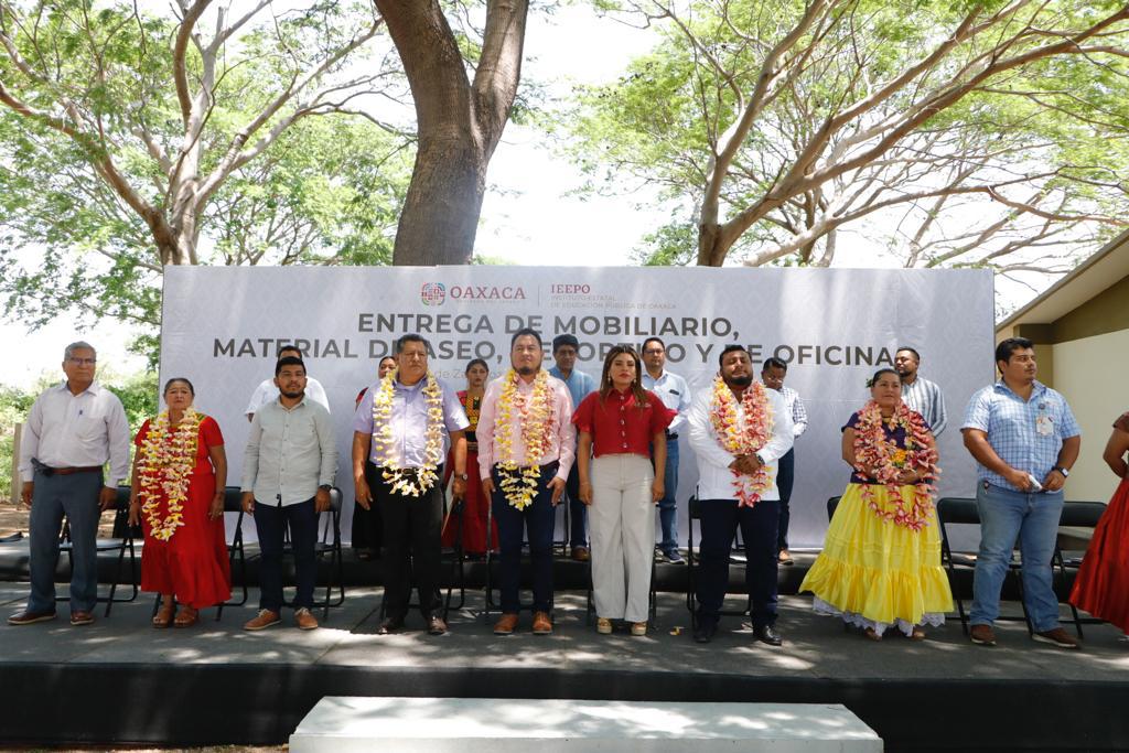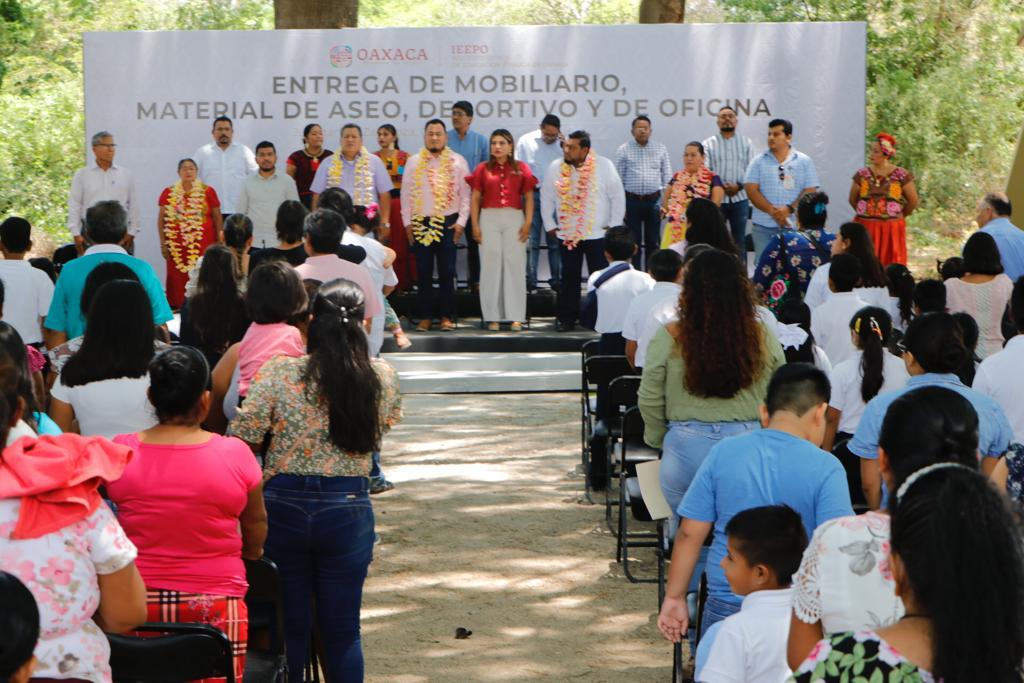 En el marco del evento, al que fue invitado por el director de dicho plantel de educación Primaria, Enrique Figueroa, a nombre del Gobernador Salomón Jara Cruz hizo entrega de un lote de mobiliario, paquetes de material de aseo, deportivo, de oficina, pintura y material cívico.