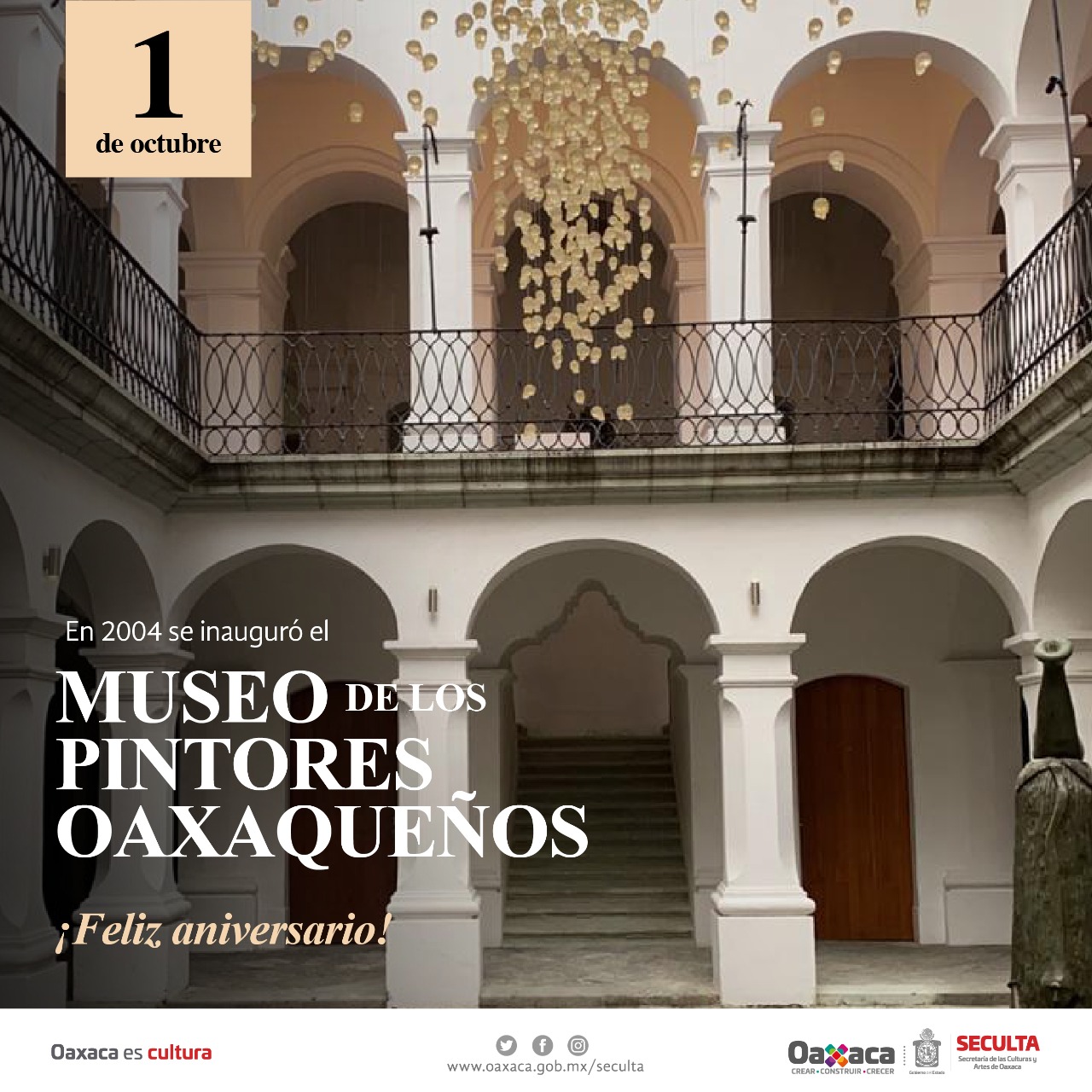 Oaxaca de Juárez, Oax. 1 de octubre de 2020. El Museo de los Pintores Oaxaqueños (Mupo), adscrito a la Secretaría de las Culturas y Artes de Oaxaca (Seculta), fue fundado el primero de octubre de 2004, por lo que este jueves cumple 16 años de ser un espacio cultural que da muestra del arte oaxaqueño reconocido a nivel mundial.