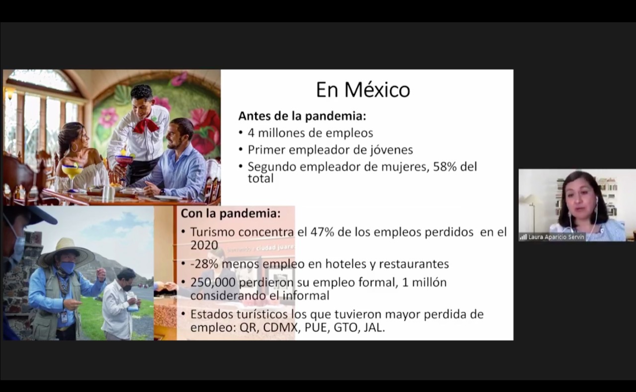 En la ponencia «Turismo y crecimiento inclusivo: las personas en el centro», impartida por la profesora investigadora de turismo en el Instituto Politécnico Nacional, Laura Verónica Aparicio Servín; se abordó la importancia de la inclusión en la recuperación del sector turístico.
