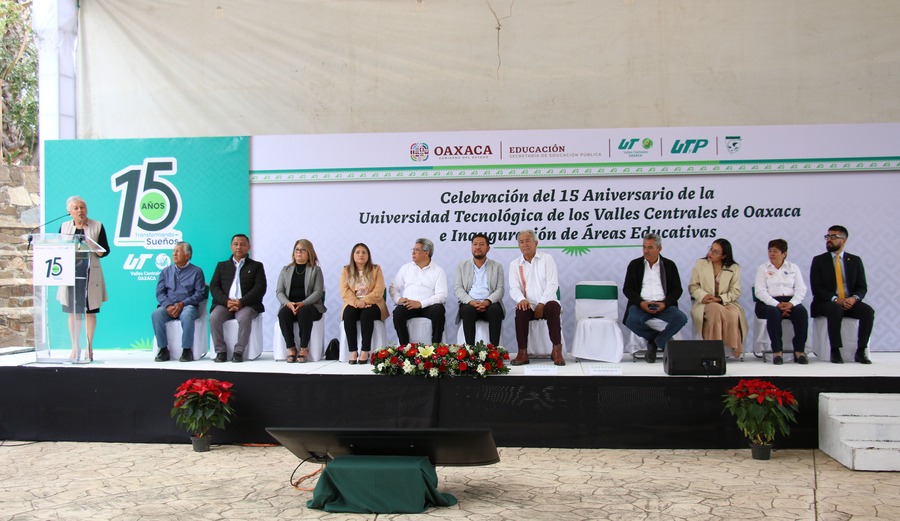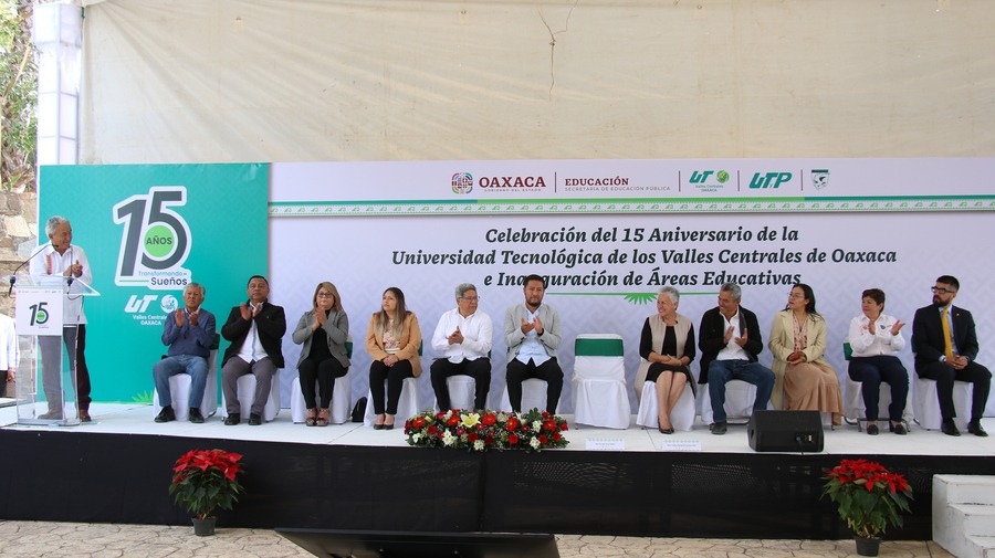 San Pablo Huixtepec, Oax. 12 de diciembre de 2024.- La Universidad Tecnológica de los Valles Centrales de Oaxaca (UTVCO) celebró su 15 aniversario y en el marco de los festejos, se llevó a cabo una ceremonia conmemorativa en sus instalaciones, ubicadas en San Pablo Huixtepec, comunidad que alberga a la universidad desde el 2009, año en que fue fundada.