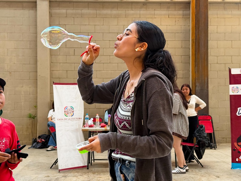 En el Recinto Ferial del Parque Primavera Cho Ndobá, bajo la temática “Ciencia Divertida”, las y los niños se adentraron a pequeños mundos a través de microscopios; en la granja de lombrices conocieron cómo la naturaleza se transforma y se renueva, mientras que las burbujas saltarinas llenaron el espacio de risas y entusiasmo.