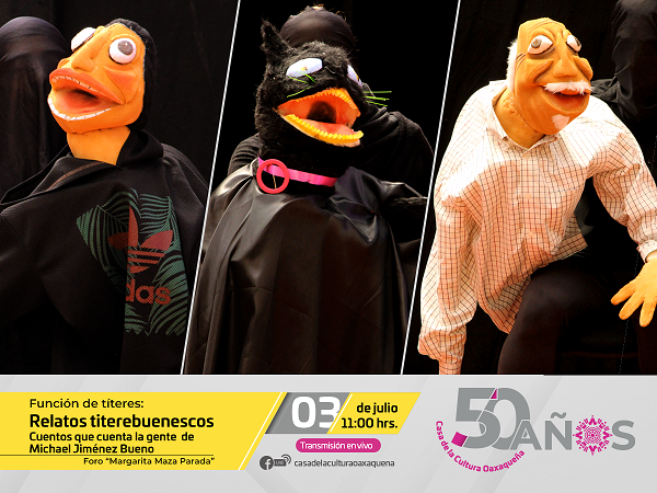Oaxaca de Juárez, Oax. 03 de julio de 2021. La Casa de la Cultura Oaxaqueña oficialmente celebra este día su 50 aniversario y cerrará la semana de actividades artísticas con la presentación teatral “La piedra de la felicidad”, la función “Relatos titerebuenescos. Cuentos que cuenta la gente”, la presentación editorial “Indeleble y el coloquio autopublicaciones y ediciones de autor.