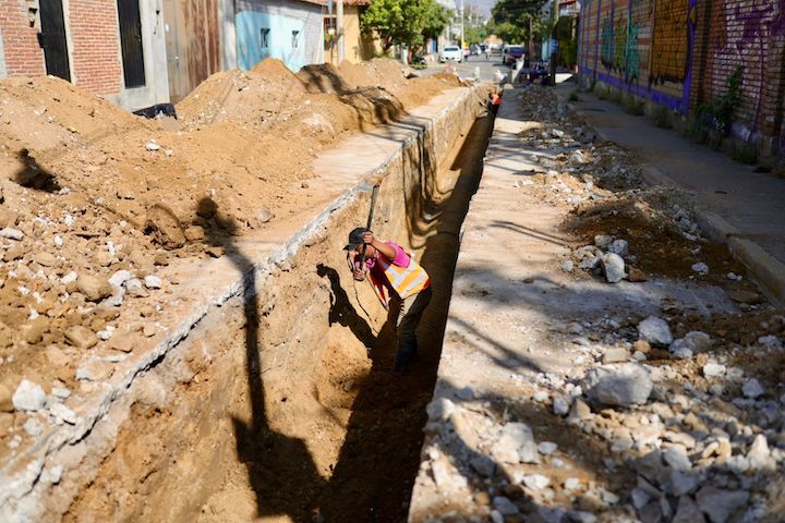 Oaxaca de Juárez, Oax., 4 de diciembre de 2025.- Para evitar que las descargas de aguas residuales desemboquen en el Río Salado, el Sistema Operador de los Servicios de Agua Potable y Alcantarillado (Soapa) rehabilita la red de drenaje sanitario en las calles Laguna de Tamiahua, Ferrocarril y Miguel Hidalgo, en el municipio de Santa Lucía del Camino.