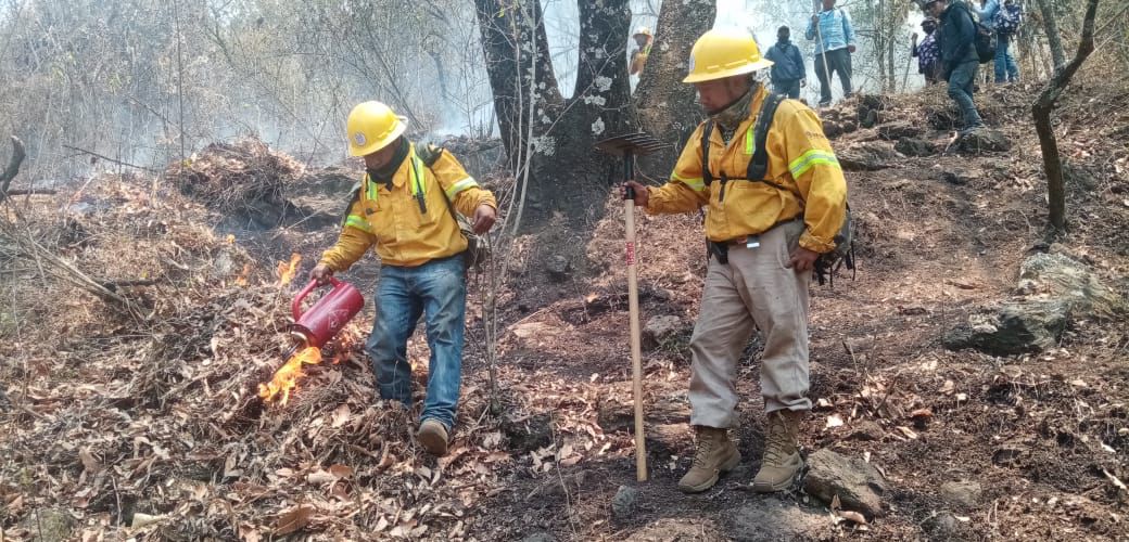 - Brigadistas realizaron un plan de ataque coordinado vía aérea con un helicóptero de Conagua y vía terrestre para contener el fuego en los parajes denominados Tres Cruces y Punto Trino