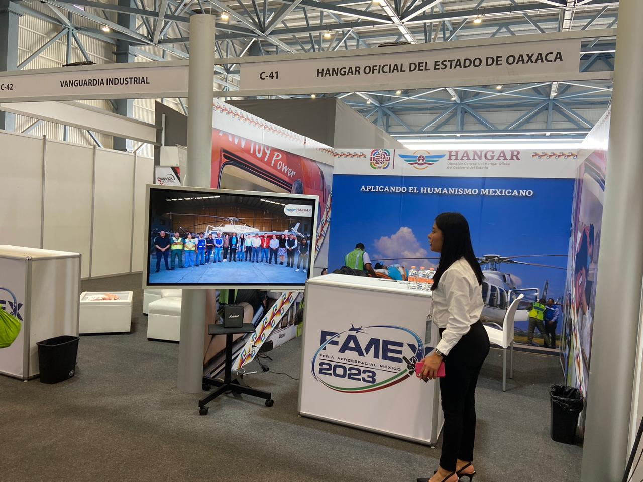 Santa Cruz Xoxocotlán, Oax. 11 de mayo del 2023.- La Dirección General del Hangar Oficial del Gobierno del Estado compartió las acciones que realiza en beneficio de la sociedad desde el inicio de la presente administración estatal, durante la Feria Aeroespacial México (Famex) 2023 que se realizó en la Base Aérea Militar de Santa Lucía, en el Estado de México.