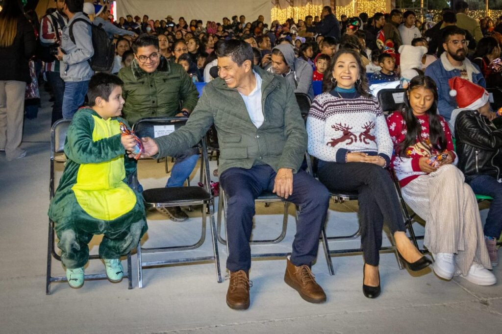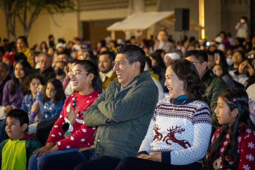 Con la tradicional posada, la niñez y adolescencia junto a sus seres queridos vivieron la magia de las fiestas decembrinas al coincidir en el tradicional recorrido con los faroles que iluminaron los pasillos que conducían al evento oficial donde se compartieron los villancicos Rodolfo El Reno y Feliz Navidad, este segundo interpretado en zapoteco de la Sierra Sur.