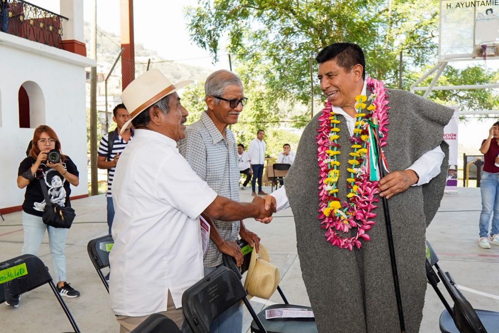 En esta comunidad donde fue recibido por el presidente municipal Romualdo Limenta Morales, el Gobernador Salomón Jara Cruz entregó apoyos como parte de la estrategia Trabajo que Transforma tu Municipio en fortalecimiento a la salud, educación, alimentación y obras públicas.