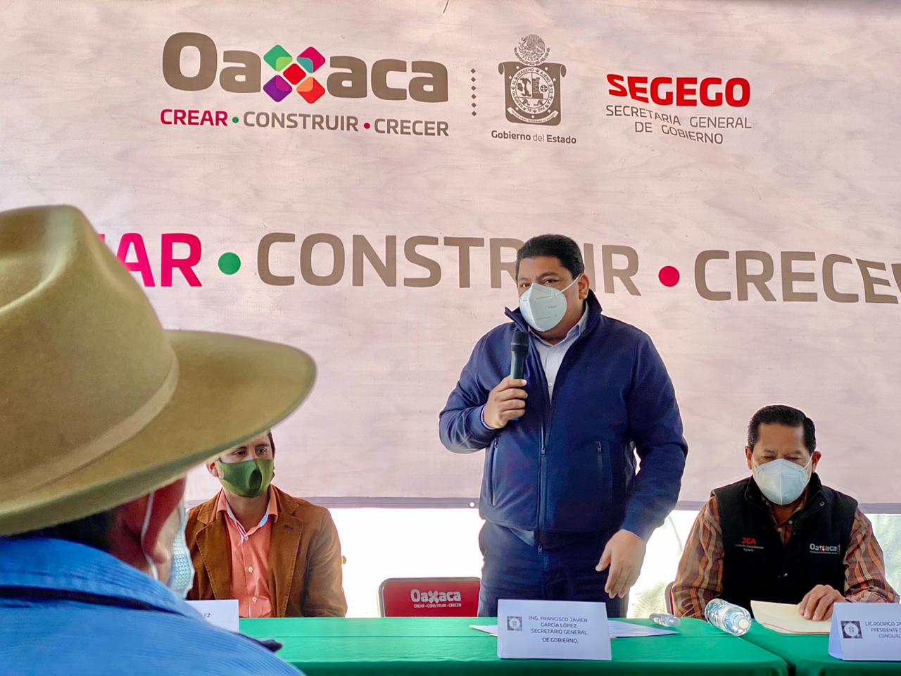 “La instrucción del mandatario estatal, Alejandro Murat Hinojosa, es privilegiar el diálogo para construir las condiciones de paz que generen el crecimiento y desarrollo de las comunidades y cuando se tiene voluntad se logran buenos acuerdos”, destacó, García López.
