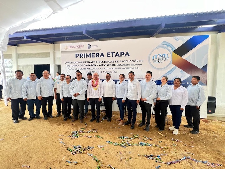 En representación del Gobernador Salomón Jara Cruz, el director general del Iocied Alejandro López Jarquín inauguró el Gimnasio Auditorio que empleó 22.8 millones de pesos, y a la primera etapa de la construcción de nave de cultivo de camarón y laboratorio de cultivo intensivo de tilapia que requirió 19.7 millones de pesos.