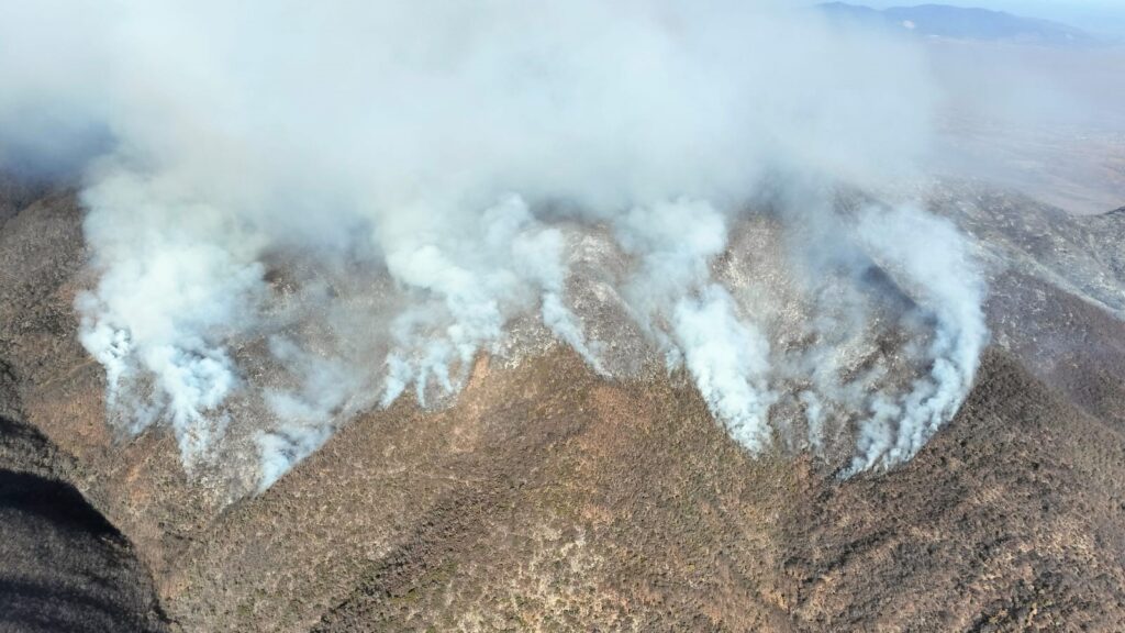 Oaxaca de Juárez, Oax. 1 de marzo de 2024.- El Gobierno del Estado informa que se realizan trabajos por tierra y aire para sofocar y liquidar el incendio forestal registrado en el municipio de San Lucas Quiaviní.