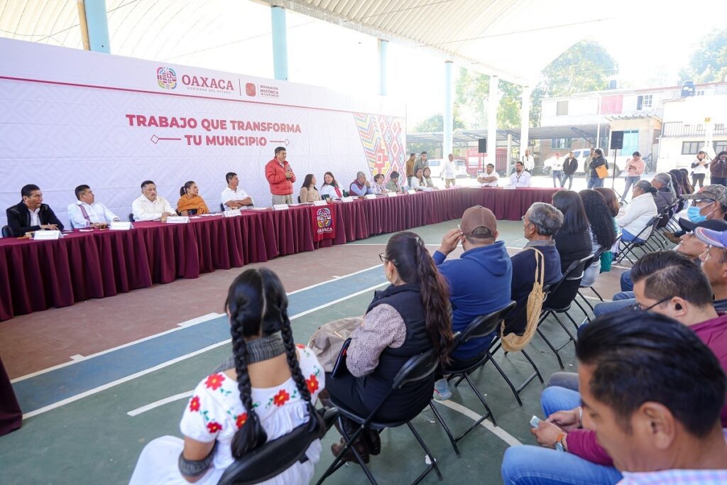 Junto a la Presidenta Honoraria del Sistema para el Desarrollo Integral de la Familia (DIF) Oaxaca, Irma Bolaños Quijano, el Mandatario estatal dio a conocer ante esta comunidad conformada por 400 habitantes, los apoyos y acciones para el bienestar que se impulsarán a través de la dotación de infraestructura, equipamiento a escuelas y programas sociales.