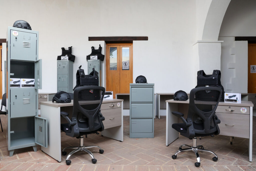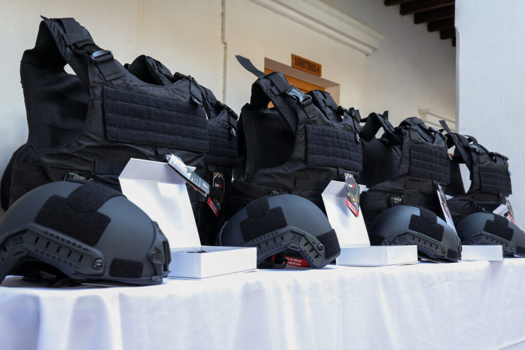 Detalló que se hizo entrega de 60 cascos balísticos, 150 chalecos balísticos, 500 lámparas tácticas y 501 mochilas tácticas.