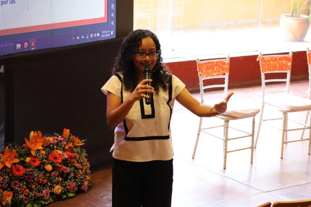 Durante el evento, la titular de la SM, Anahí Sarmiento Pérez reconoció el trabajo conjunto de las y los asistentes para prevenir y erradicar la violencia de género a través de la sororidad, capacitación e intercambio de buenas prácticas.