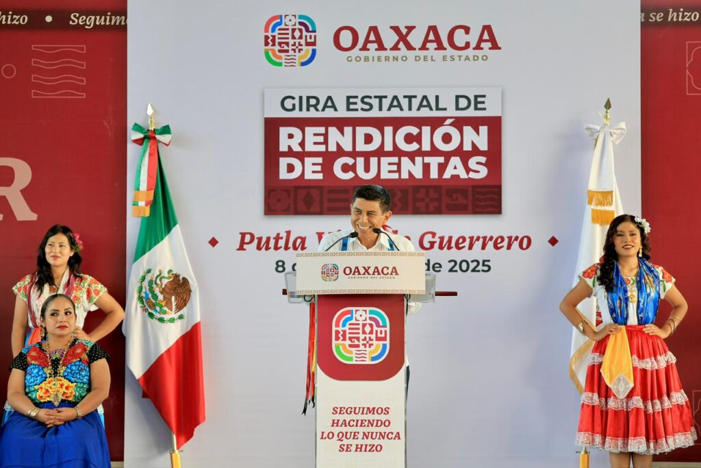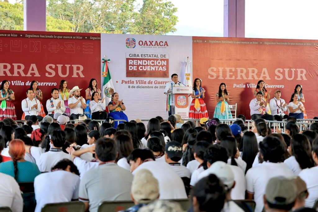 Luego de aseverar que Oaxaca no se gobierna desde un escritorio ni con promesas; sino caminando sus montañas, escuchando sus lenguas y ejecutando acciones concretas para atender sus necesidades; el Mandatario estatal compartió los logros alcanzados en esta región en lo que va de su administración: